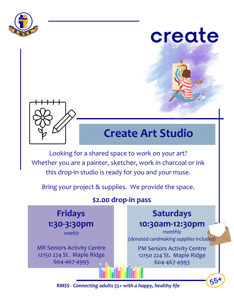 Description: A drop-in studio for artists to convene, create, and collectively inspire. Do you sketch? Dabble un water colours? Play with pastels or colour in charcoal? Bring your project and supplies. We provide the space.